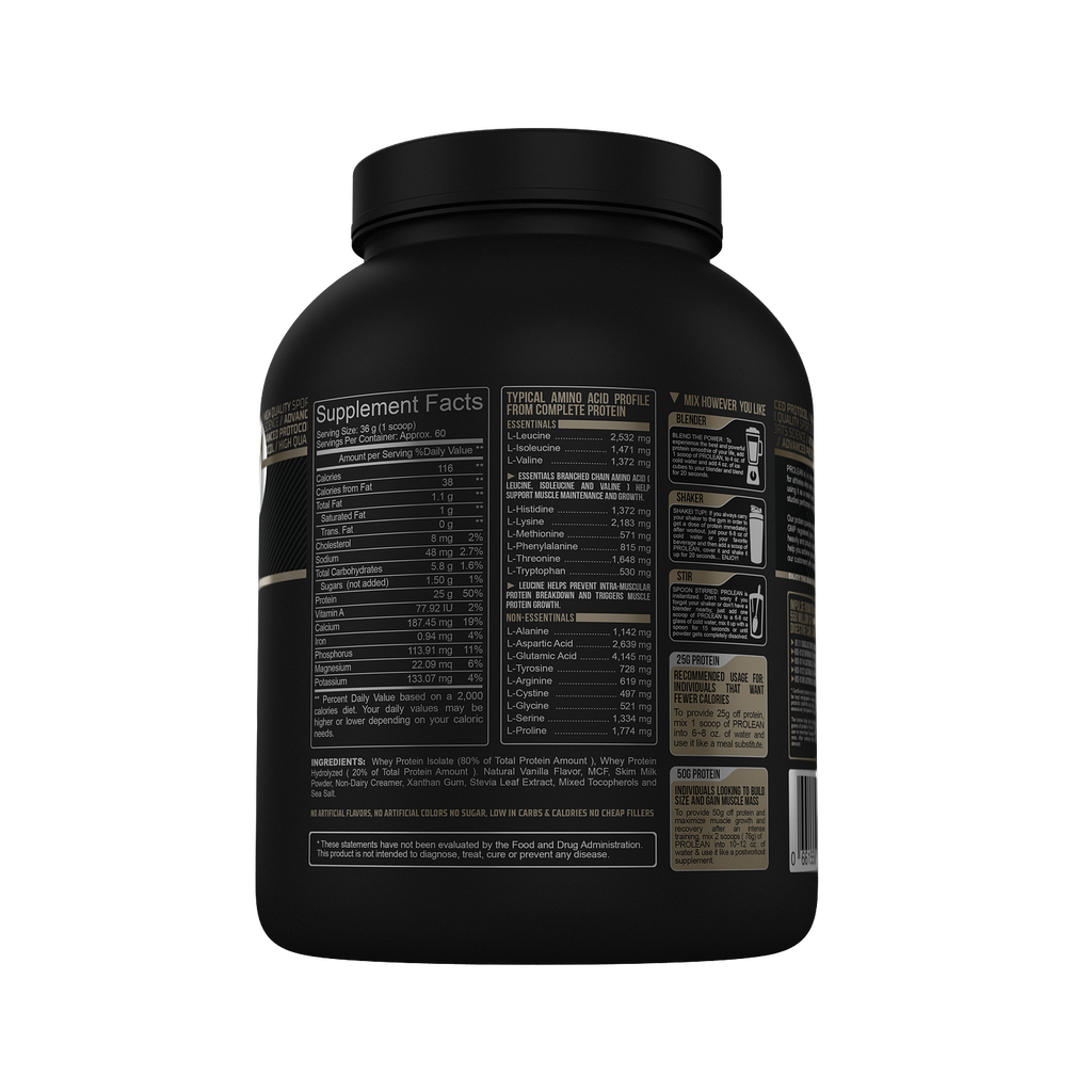 Prolean is an isolate hydrolyzed protein blend that contains 25g of protein per serving. It is composed of 18 amino acids to improve recovery and build muscle.